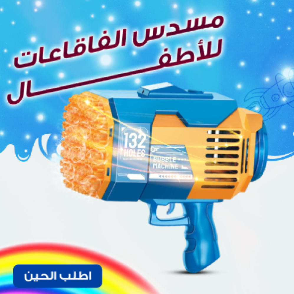مسدس الفقاعات للاطفال هو اللعبة المثالية اللي تضيف جو من الفرح والضحك لأي مناسبة يطلق مئات الفقاعات الملونة بمجرد ضغطة زر. ممتاز للّعب في الحديقة أو الشاطئ أو داخل المنزل!